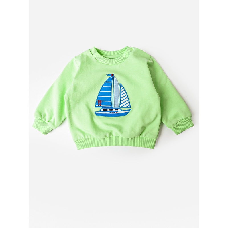 DESCRIPTION:Crewneck fleece sweatshirt with convenient snap shoulders and a front novelty graphic.FEATURES:SweatshirtCrew NecklineSnap ShouldersFront GraphicLong SleeveStraight HemBanded Cuffs & HemFleece Fabrication61% Cotton, 38% Polyester, 1% ElastaneCl