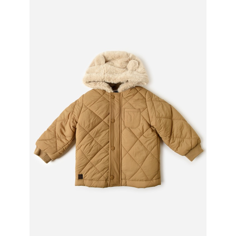 DESCRIPTION:A soft quilted coat with a contrast sherpa hood featuring an animal ear detail.