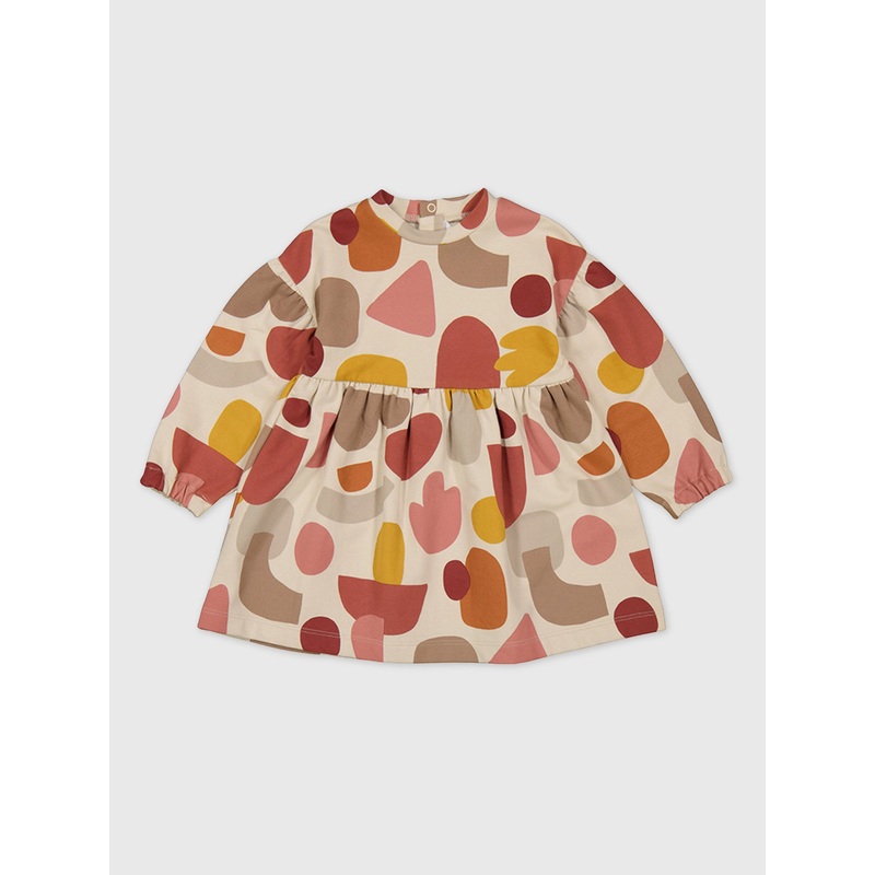 This charming fleece dress features a delightful all-over abstract print with a comfortable voluminous sleeve and skirt design.
