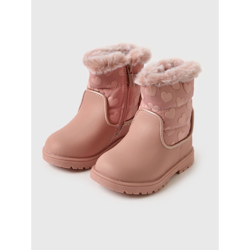 DESCRIPTION:A partial leather boot with a cute heart print and soft faux shearling lining.FEATURES:Round ToeHeart PrintUpper: Leather/PolyesterLining: Polyester BlendOutsole: Thermoplastic Rubber