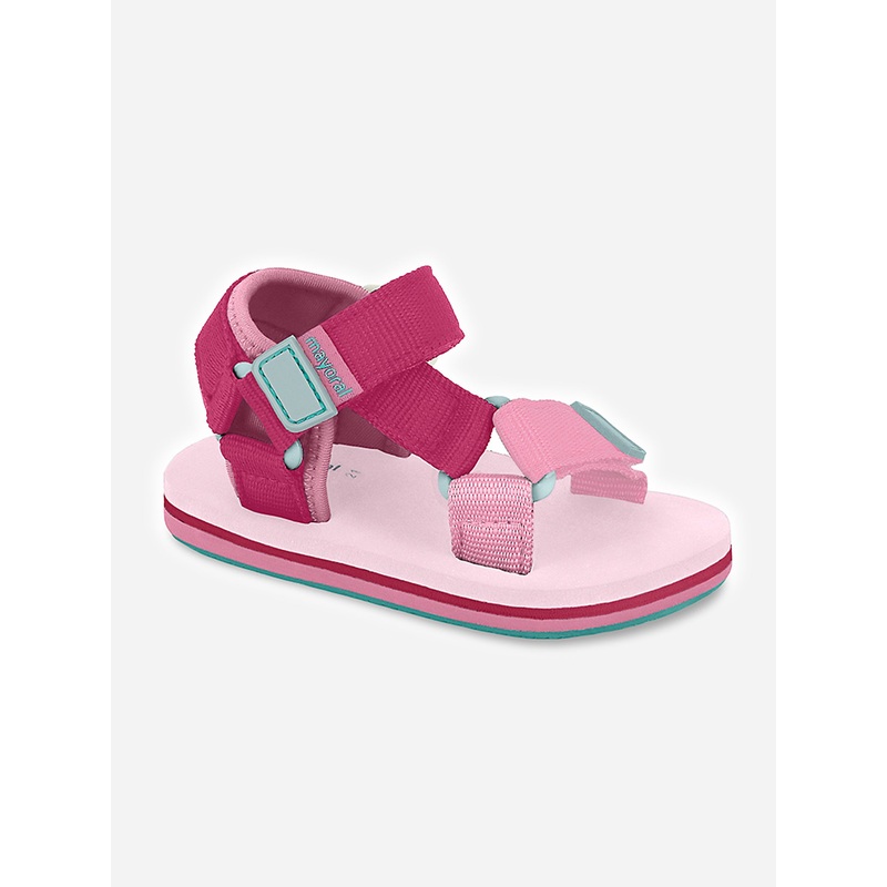 DESCRIPTION:A multi-colored sandal with adjustable velcro straps.FEATURES:Round ToeVelcro StrapsUpper: PolyesterOutsole: Rubber