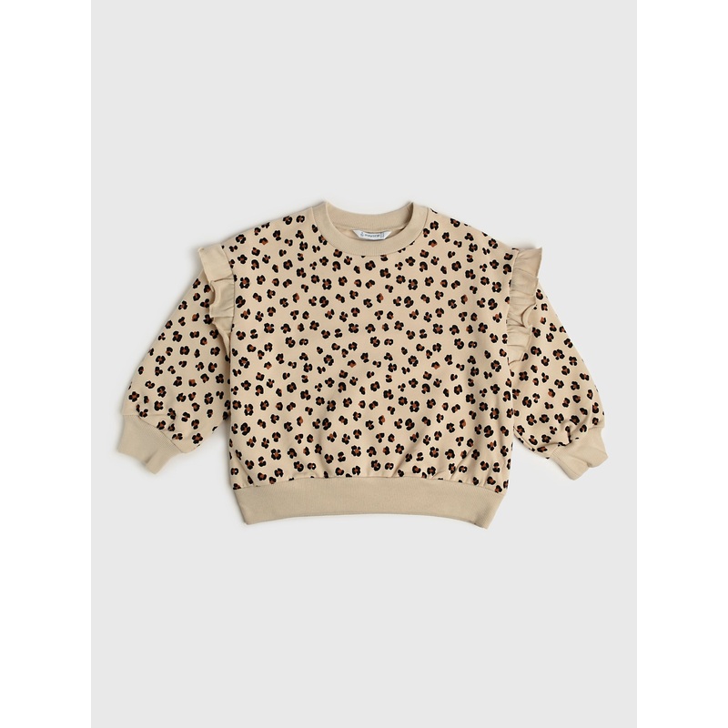 DESCRIPTION:A comfortable crewneck pullover made from a soft cotton blend with ruffle-trimmed details.FEATURES:Crew NecklineRuffle ShoulderBanded Cuffs and HemAll-Over Novelty Print95% Cotton, 5% ElastaneClassic Fit