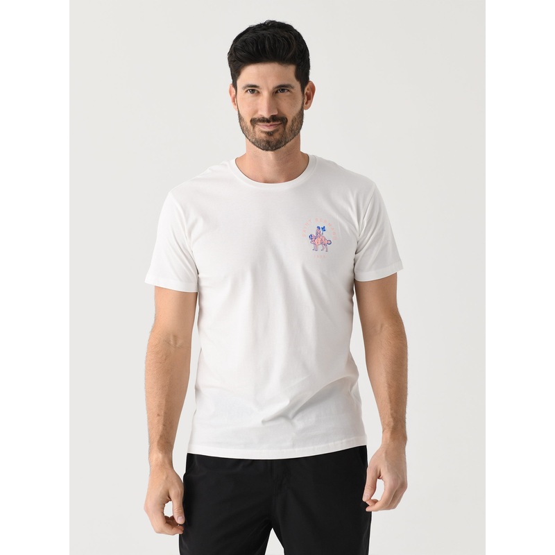 DESCRIPTION:A lightweight cotton tee featuring custom graphics.FEATURES:Crew NecklineGraphics on Left Chest and BackStraight Hem100% CottonClassic FitModel is wearing size Medium tee. Natural: Model's Measurements: Height: 6'1.5" | Waist: 32" | Inseam: 34"