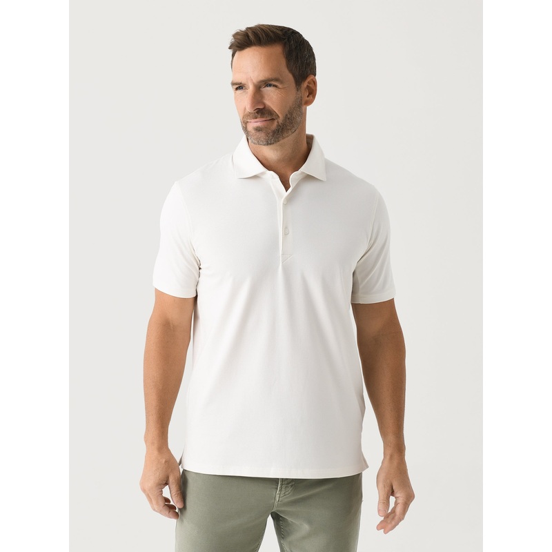 DESCRIPTION:A classic three-button polo made from a soft cotton knit blend.FEATURES:Spread Collar3-Button PlacketKnit Fabrication70% Cotton, 25% Recycled Polyester, 5% SpandexClassic FitModel is wearing size Medium polo.Snow White: Model's Measurements: He
