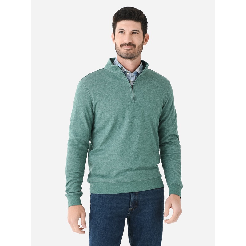 DESCRIPTION:Heathered quarter-zip pullover with a soft midweight finish.FEATURES:Stand-Up CollarQuarter-Zip ClosureBanded Cuffs and HemHeathered YarnKnit Fabrication40% Polyester, 33% Rayon, 27% CottonClassic FitModel is wearing size Medium pullover.Pine,