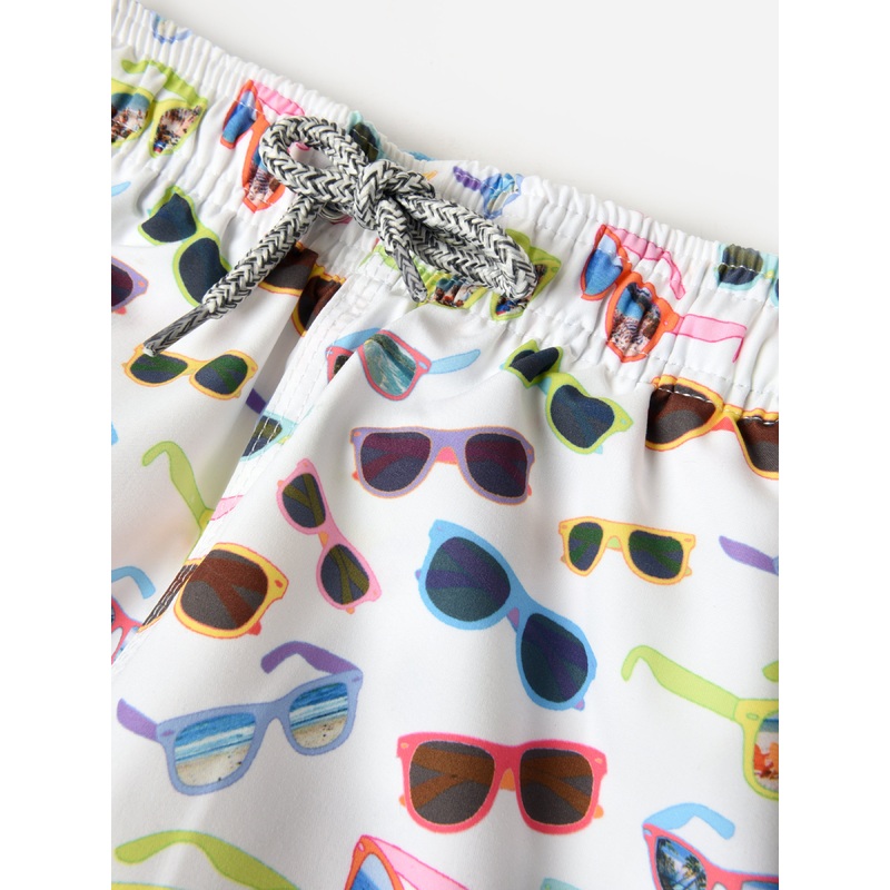 DESCRIPTION:A quick-drying swim trunk featuring a colorful sunglasses print.