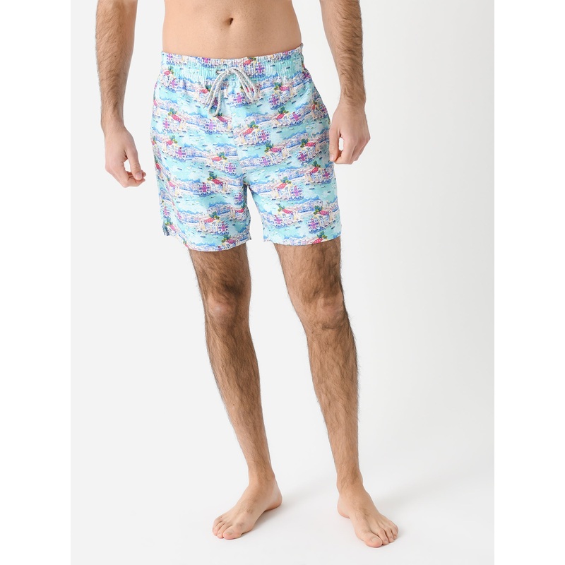 A quick-drying swim trunk with a custom Portofino print and super fine cyclist mesh lining.