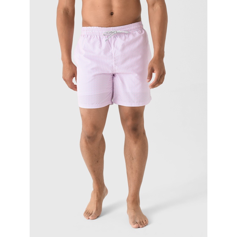 DESCRIPTION:Quick-drying swim trunk with a micro-mesh cyclist liner and custom wave print.FEATURES:Elastic WaistbandAdjustable DrawstringSide PocketsBack PocketCyclist LinerAll-Over Novelty PrintQuick-Drying100% PolyesterClassic FitModel is wearing size Me