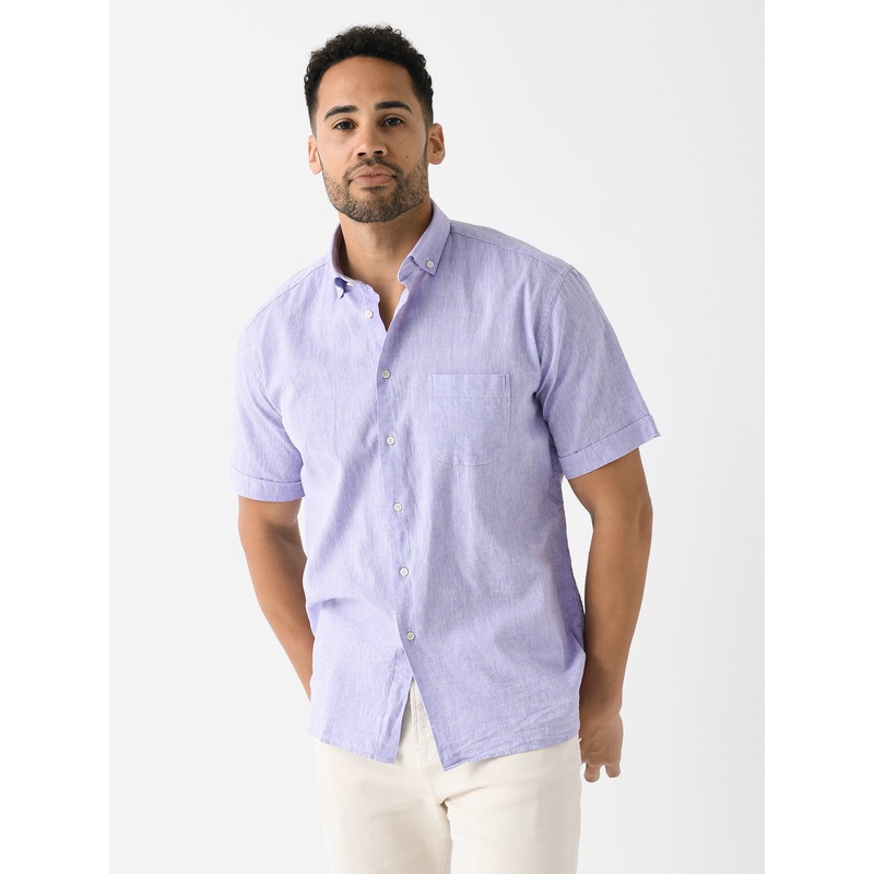 DESCRIPTION:A lightweight short-sleeve button-down shirt woven from soft linen and cotton.FEATURES:Button-Down CollarButton-Down PlacketLeft Chest PocketCurved Hem55% Linen, 45% CottonClassic FitModel is wearing size Large shirt.Lavender, Blue: Model's Mea