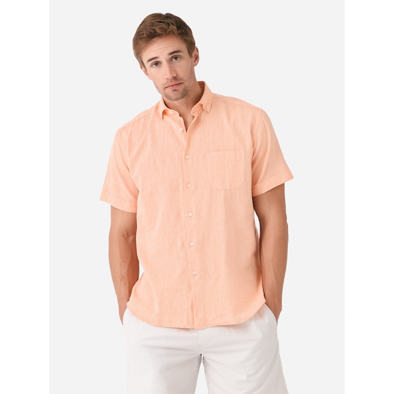 Breathable linen-cotton short sleeve button-down shirt.