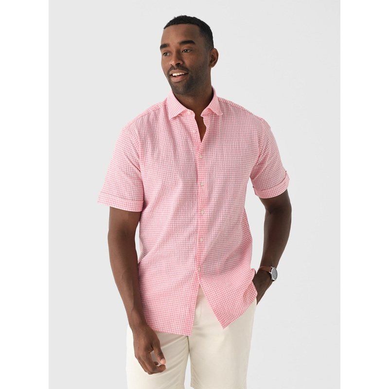 DESCRIPTION:A lightweight and airy button-down shirt made from gingham-printed seersucker fabric with cuffed sleeves and a button-down collar.FEATURES:Hidden Button-Down CollarCuffed SleevesButton-Down PlacketCurved HemAll-Over Gingham PrintSeersucker Fabr