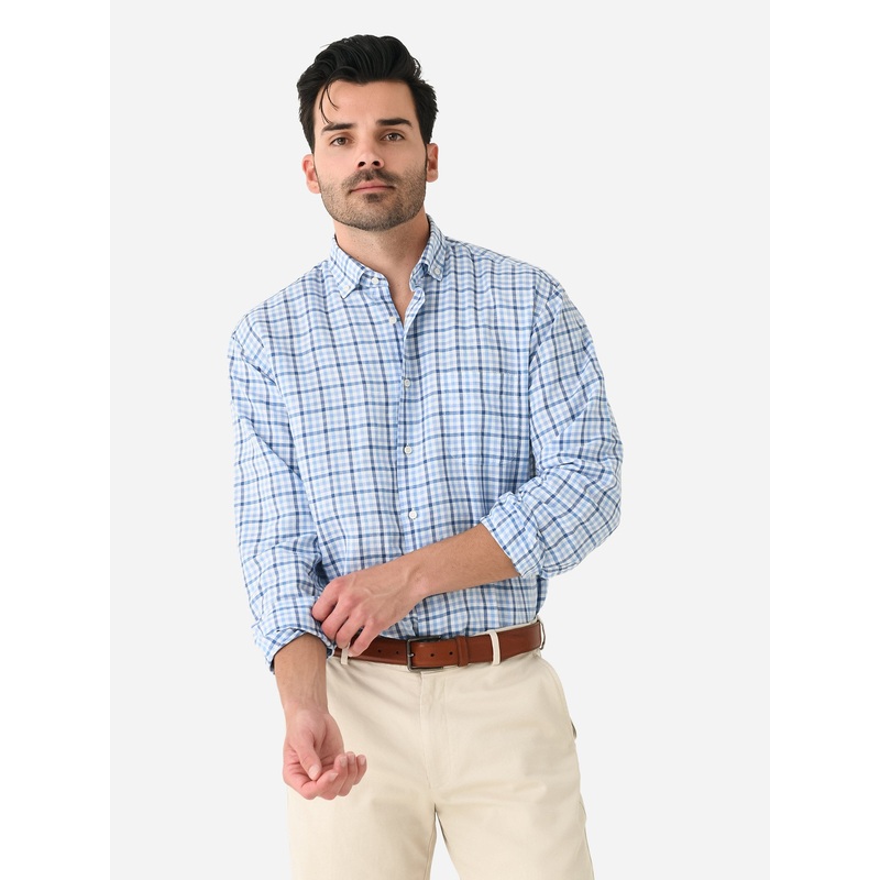 DESCRIPTION:Linen-cotton blend button-down shirt with a monochrome plaid print.FEATURES:Button-Down ShirtButton-Down CollarLeft Chest PocketLong Sleeve with Button CuffsButton-Down PlacketAll-Over Plaid PrintCurved Hem55% Linen, 45% CottonClassic FitModel