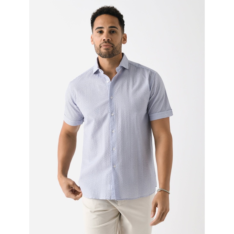 A lightweight cotton seersucker shirt featuring a small anchor print.