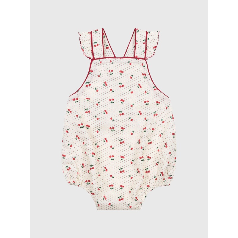 This adorable bubble onesie is made from lightweight cotton and features a sweet cherry print and criss-cross ruffle straps.