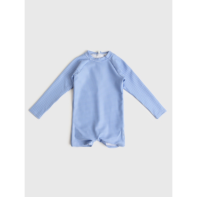 DESCRIPTION:A gingham-printed one-piece swimsuit made from buttery soft sun-protective fabric with a unisex design.FEATURES:Round NecklineBack Zip ClosureRaglan SleevesAll-Over Gingham PrintUPF 50+ Sun Protection86% Polyester, 14% LycraClassic Fit* Sizes 0