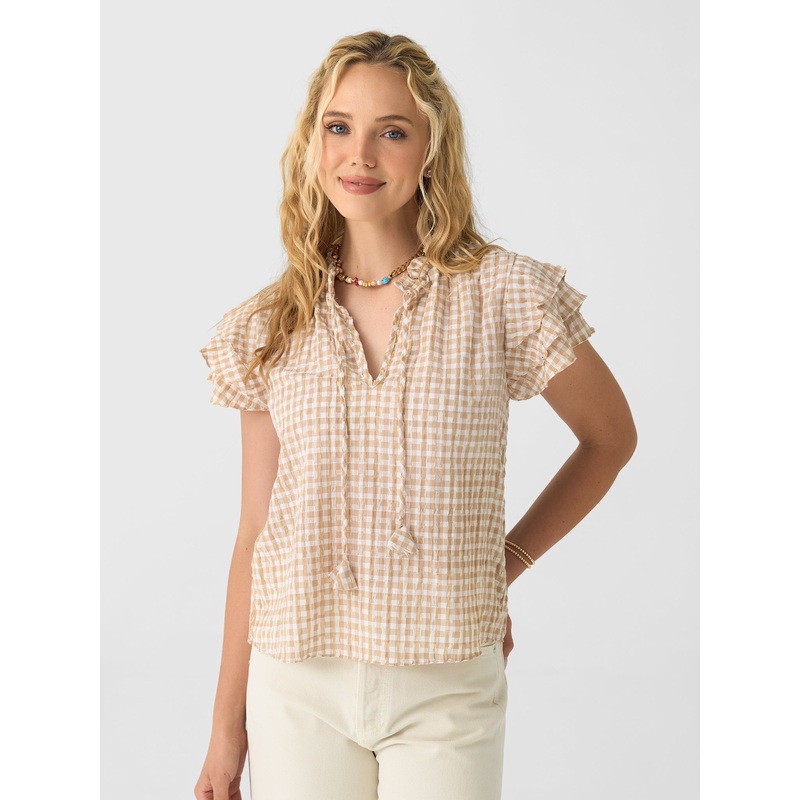 Misa Women’s Maria Top|XS|S|M|L|MOCHA GINGHAM