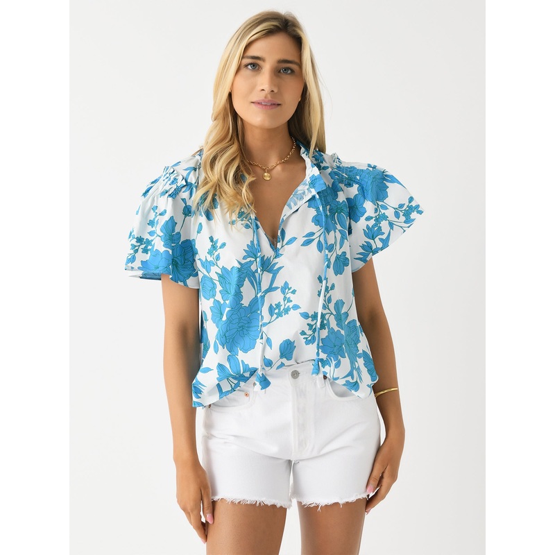 DESCRIPTION:A vibrant floral-printed blouse cut from lightweight poplin fabric.FEATURES:Ruffle CollarV-Neckline, Self-TiesDramatic SleevesAll-Over Novelty PrintPoplin Fabrication98% Cotton, 2% SpandexClassic FitModel is wearing size Small top.Model's Measu