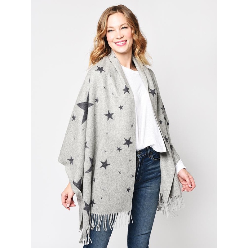 DESCRIPTION:Add some starry-night vibes to your look with the ultra cozy and luxe Mitchie`s Matchings Cashere Shawl. FEATURES:ShawlStar PatternSuper Soft and WarmFringe DetailCashmere-Wool Blend FabricationVarious Wearable Ways90% Wool, 10% CashmereStyled