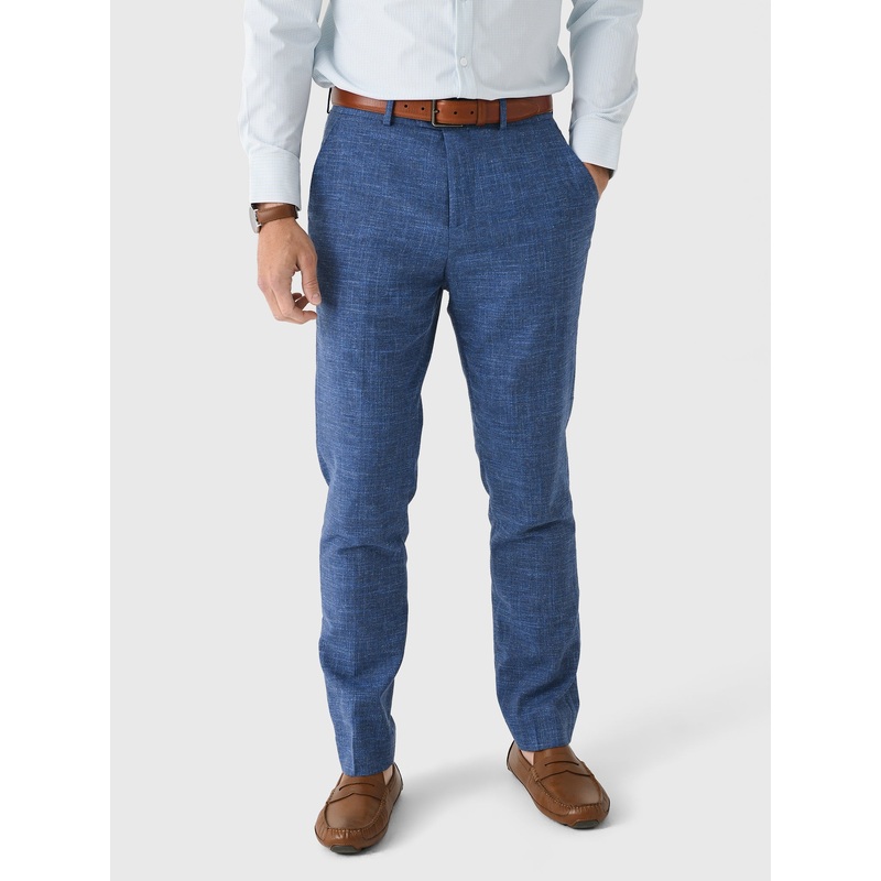 A sophisticated dress pant with timeless style and a lightweight feel, crafted from a premium blend of wool, cotton, linen, and elastane for superior comfort and mobility.