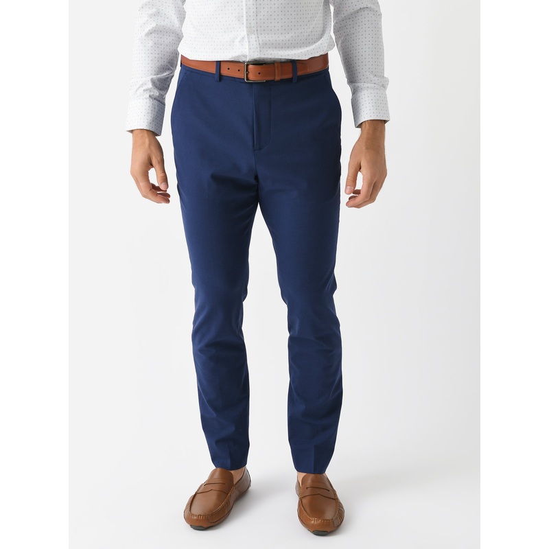 A lightweight dress pant made from a breathable wool and elastic blend with a tailored design.