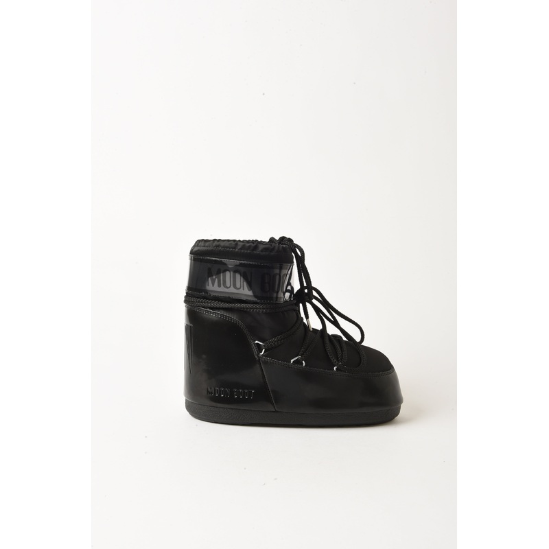 DESCRIPTION:A glossy, satin low-top boot with a drawstring closure and water-repellent finish.FEATURES:Round ToeDrawstring ClosureLogo Print PanelTubular LacesPVC Heel & TrimNylon/Polyester UpperFoam LiningThermoplastic MidsoleRubber Tread SoleWater-Repell