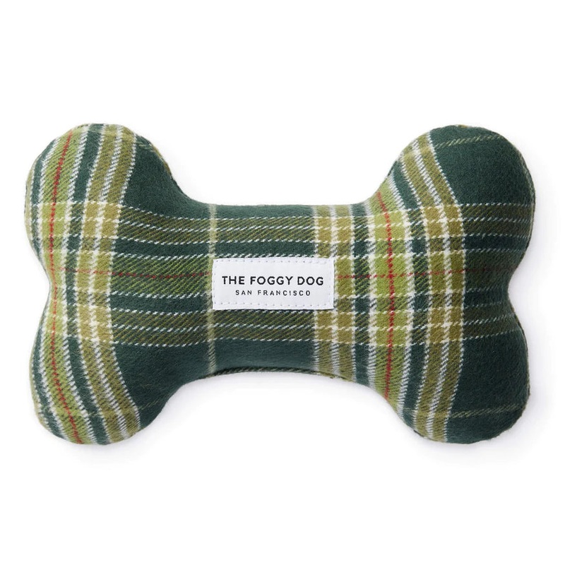 Mossy Plaid Flannel Dog Bone Squeaky Toy (Made in the USA)