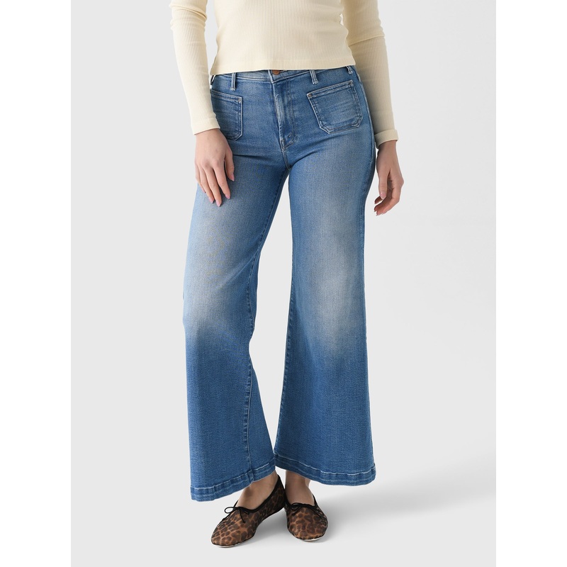 This high-waisted wide-leg jean is made from comfortable stretch denim and features patch pockets and a clean hem.