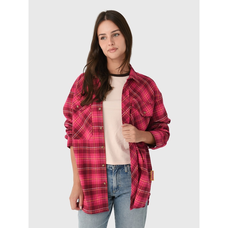An oversized, plaid button-down shirt made from soft cotton.