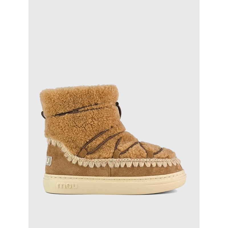 DESCRIPTION:The Eskimo Sneaker Bold Scoubidou Lace Boot is a cozy and stylish choice for winter. Crafted from soft, curly sheepskin, it features mou's signature hand-crochet wool stitching and a bold scoubidou lace detail. A durable and comfortable sole ma
