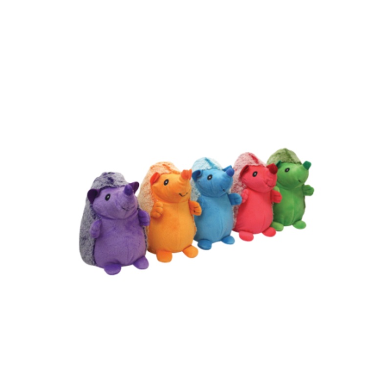 Hedgehogs are the newest addition to the Multipet family! Each Hedgehog has a squeaker that makes an enticing grunting noise to encourage play, and we have incorporated two different fabrics for added texture. In fact, our Hedgehogs are ultra-soft, making them perfect cuddle companions for pups that love to snuggle. And the bright, five color assortment makes them highly collectible!