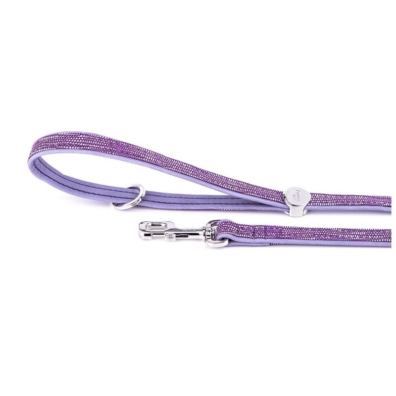 Dog leash of the Saint Tropez collection in fine crafted lilac leatherette with white bronze finishing.