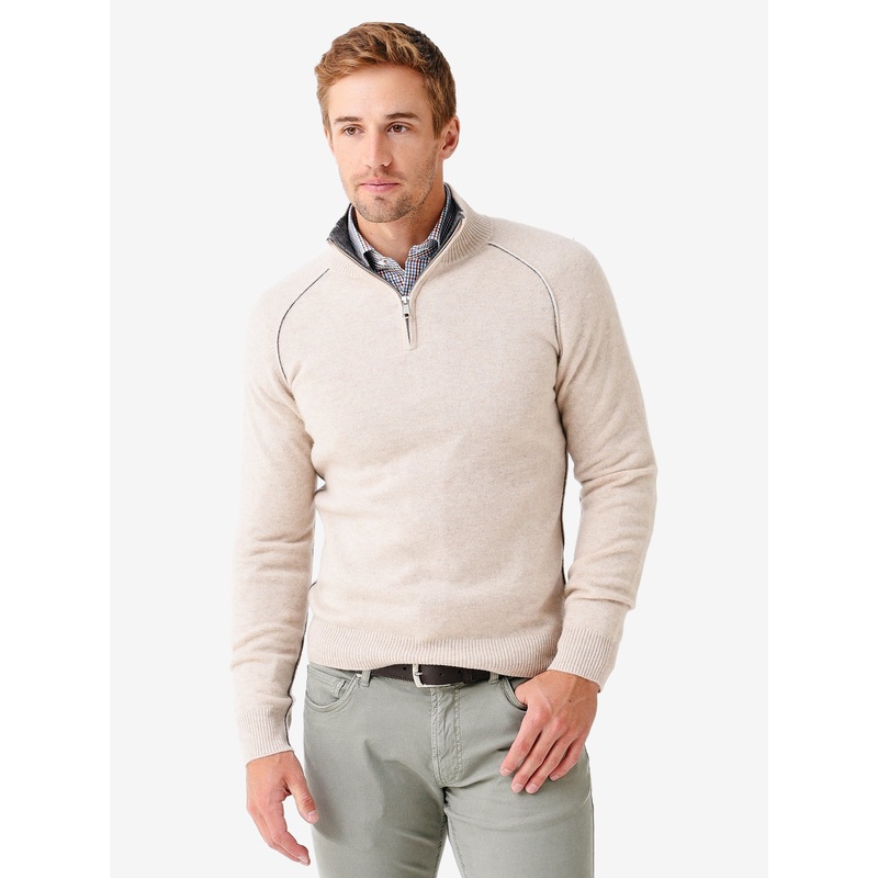 DESCRIPTION:Incredibly soft knit quarter-zip sweater.FEATURES:PulloverStand-Up CollarQuarter-Zip ClosureLong SleeveRibbed Neckline, Cuffs and HemStraight HemKnit Fabrication100% CashmereClassic FitModel is wearing size Medium pullover.Lavender, Oatmeal, Ti