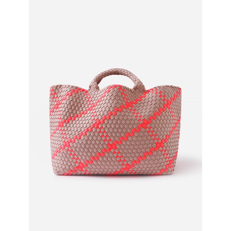 DESCRIPTION:Large carryall tote bag made from durable neoprene with a plaid design.FEATURES:Open TopUnlinedHandwoven ConstructionMatching Pouch IncludedNeoprene FabricationDimensions: 22 in. L x 12.5 in. H x 8 in. D | Handle Drop: 5.25 in.