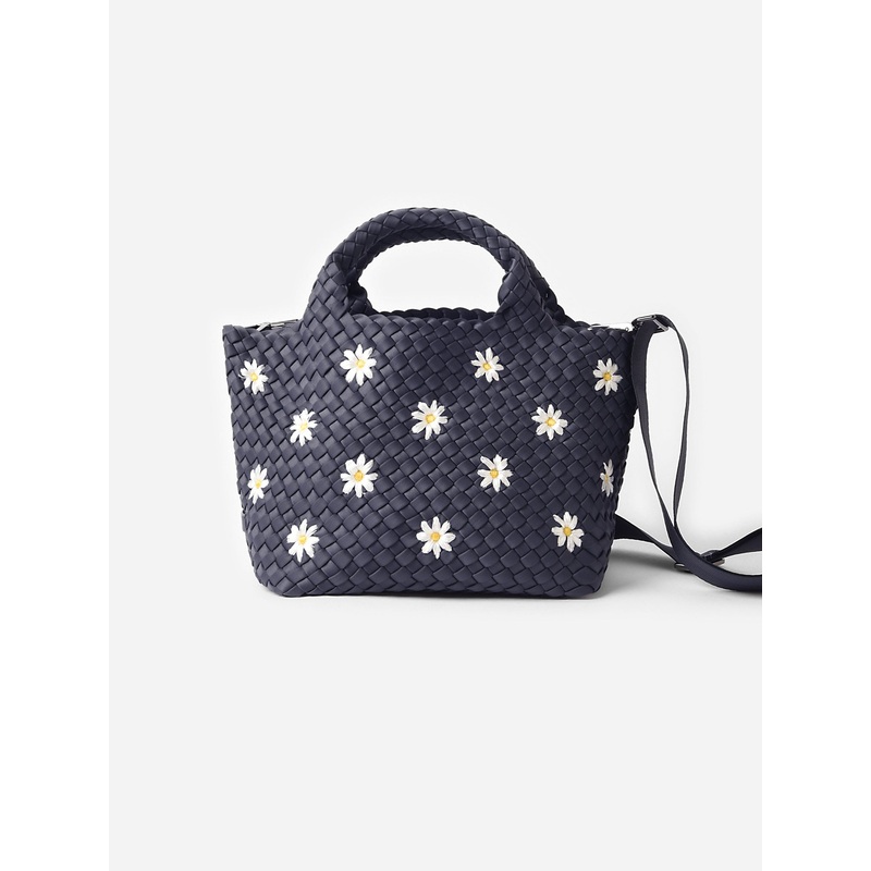 DESCRIPTION:A mini neoprene tote featuring a lovely embroidered daisy design with an optional strap and matching pouch.FEATURES:Open TopRemovable StrapEmbroidered DaisysMatching Pouch IncludedUnlinedHandwoven ConstructionNeoprene FabricationDimensions: 7.5