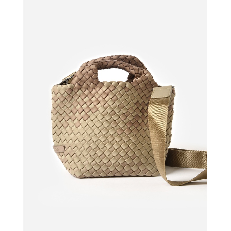 DESCRIPTION:A super mini tote featuring ombre detailing with an optional strap and matching pouch.FEATURES:Open TopRemovable StrapMatching Pouch IncludedUnlinedHandwoven ConstructionNeoprene FabricationDimensions: 6 in. H x 9 in. W x 5 in. D | Handle Drop: