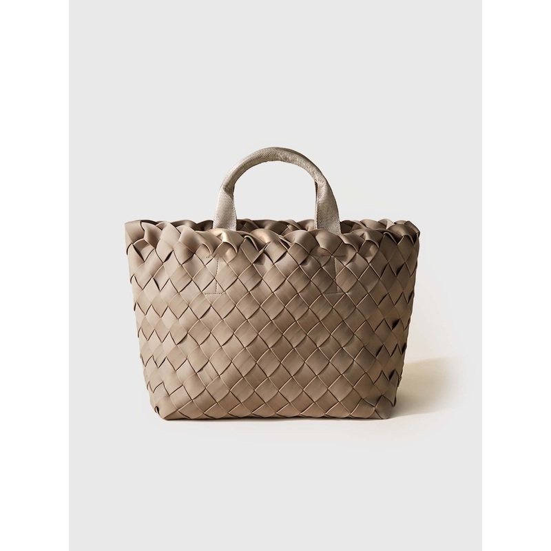 The Tangier Medium Tote elevates everyday style with exceptional craftsmanship. Handwoven from neoprene in a chic wide weave, this durable bag offers modern elegance, making it ideal for daily use.