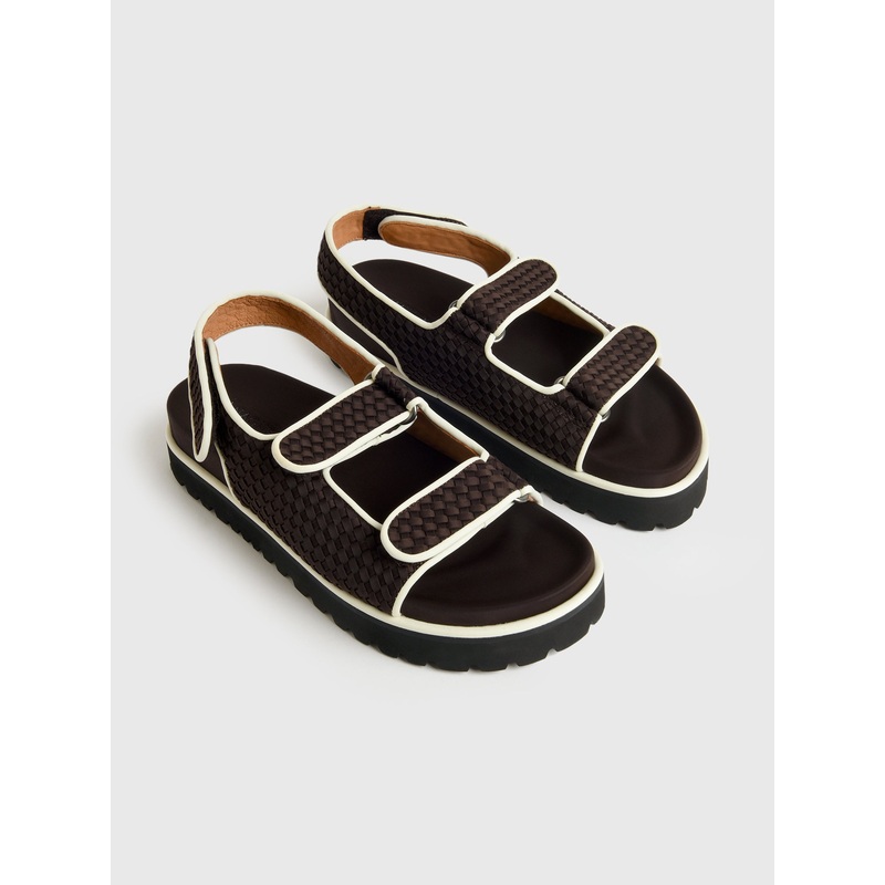 This sporty sandal features an elevated design made from handwoven neoprene with contrast piping.