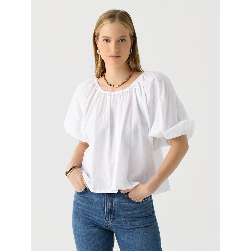 DESCRIPTION:A light and flowy blouse made from soft cotton and finished with a scoop neckline and puff sleeves.FEATURES:Scoop Neckline3/4 Length Puff SleevesGathered Details100% CottonRelaxed FitModel is wearing size Small top.Model's Measurements: Height: