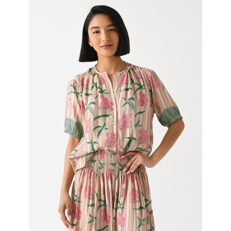 DESCRIPTION:An easy-fitting blouse made from soft flowing silk featuring a custom print and shell buttons.FEATURES:Round NecklineDropped ShoulderButton-Down FrontAll-Over Novelty Print100% SilkClassic FitModel is wearing size Small top.Chamomile Rose: Mode