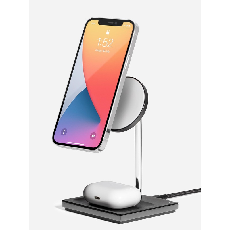DESCRIPTION:Multi-device magnetic charging stand.FEATURES:Wireless ChargerPowers iPhone up to 7.5W & AirPods or AirPods Pro up to 5WStream in Landscape, Twist to Browse in PortraitAdjustable Angle for Versatile ViewingEffortless One-Hand Detachment with a