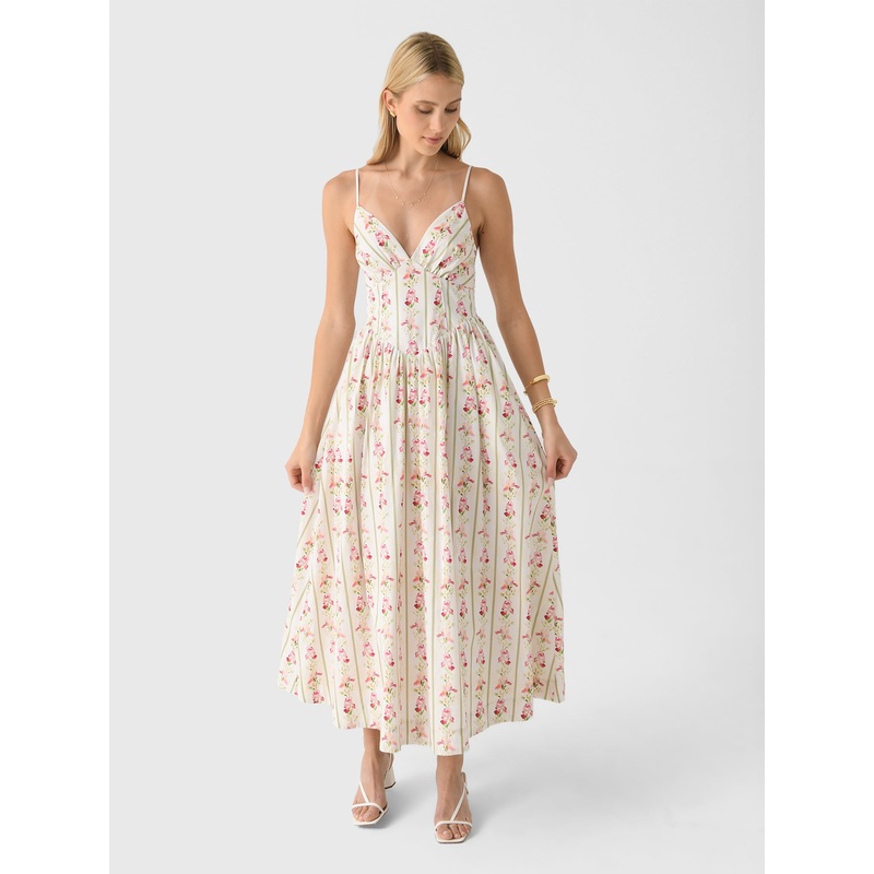 DESCRIPTION:A flattering dress made from floral-printed cotton with a corset-style princess waist and a full flowy skirt.FEATURES:V-NecklineThin, Adjustable StrapsBack Zip ClosureCorset WaistSide PocketsFull SkirtMaxi SilhouetteAll-Over Novelty Print100% C