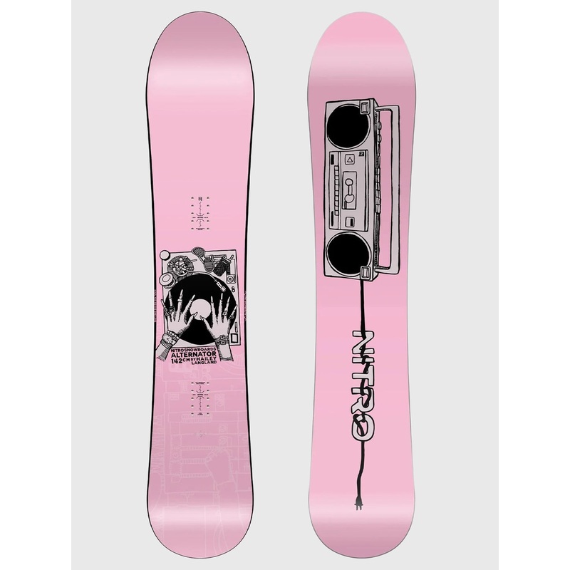 DESCRIPTION:Co-crafted by backcountry queen Hailey Langland, the Nitro Alternator x Hailey Snowboard is built for versatile all-mountain fun. This directional ATV offers a dreamy blend of float for powder and nimble carving, perfect for exploring deep stas