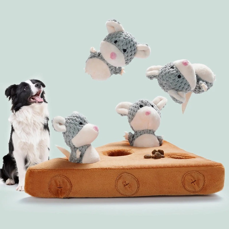 Watch tails wag with delight over the Nocciola Enrichment Toys for Dogs! Featuring an irresistibly squeaky mouse and clever treat-hiding pockets, this playful duo is designed to keep your furry friend entertained and engaged for hours. Hide your dog's favo