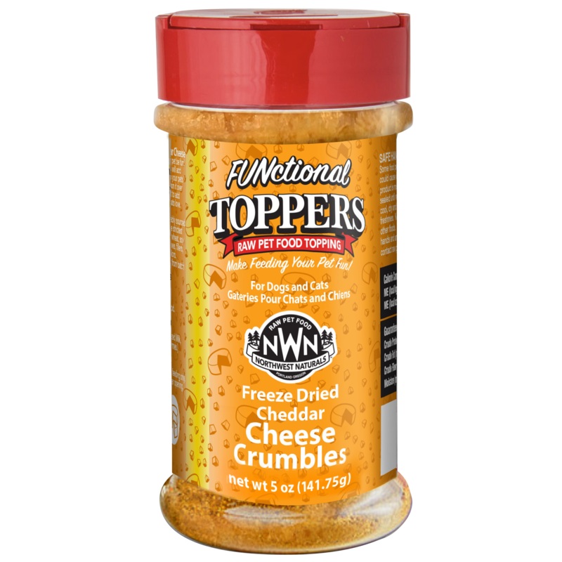 Northwest Naturals Cheddar Cheese CrumblesFreeze Dried Toppers NEW Cheddar Cheese Crumbles!Northwest Naturals toppers will add flavor palatability and fun to your pets current diet.Sprinkle or spoon it over your pets kibble or raw diet to add extra flavor