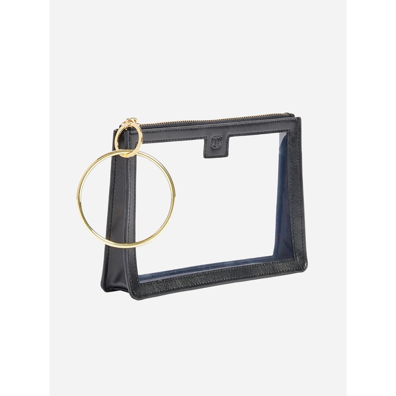 A hold-it-all clear clutch with an easy-to-carry bracelet design.