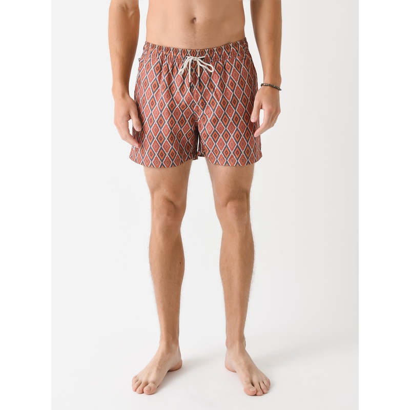 A breathable, quick-drying swim trunk featuring a vintage-inspired diamond print.