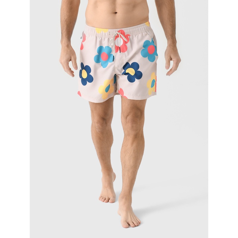 This stylish swim trunk features a retro-inspired floral print and a classic, straight fit for ultimate comfort.