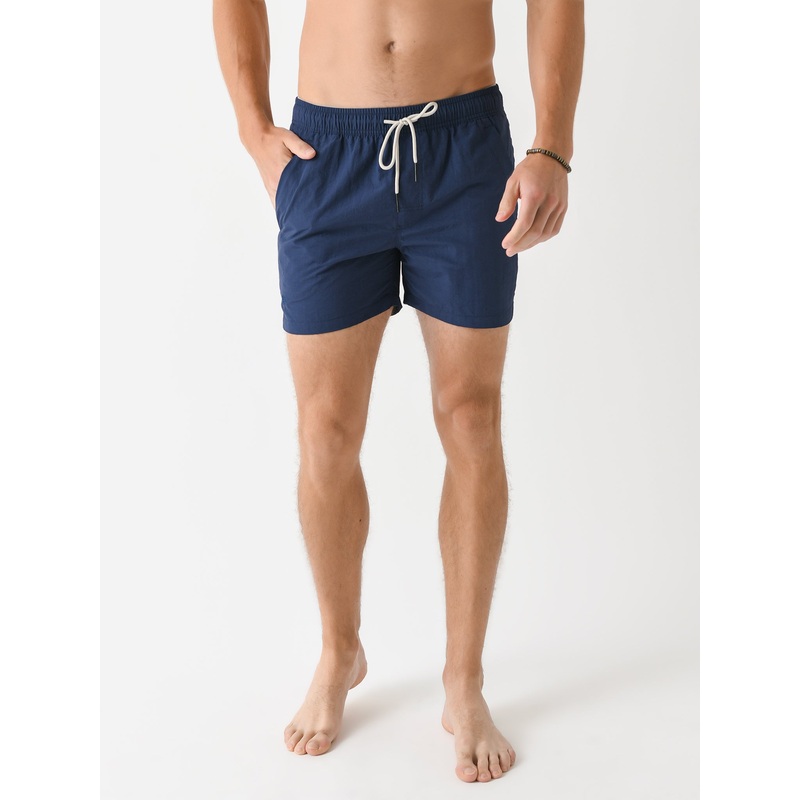 DESCRIPTION:A navy blue swim trunk made from quick-drying nylon fabric with a soft mesh lining.FEATURES:Elastic WaistbandAdjustable DrawstringSide PocketsBack Pocket, Hidden Zip PocketMesh LiningInseam: 4.5 in. (L)Quick-Drying100% NylonClassic FitModel is