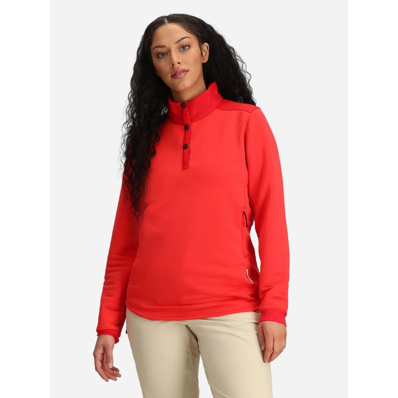 DESCRIPTION:Fleece pullover with a snap button placket and zip pockets.