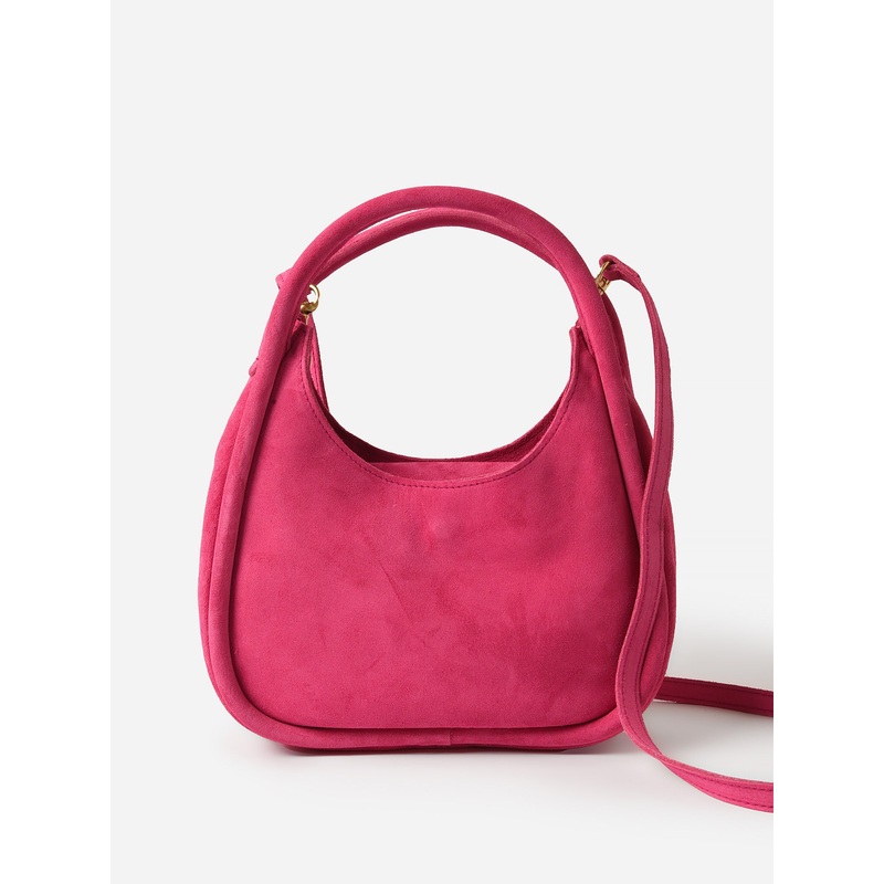 DESCRIPTION:A soft leather handbag featuring top handles and an optional crossbody strap.FEATURES:Magnetic ClosureDetachable StrapUnlinedGuacho: Pebbled LeatherPeony: Suede Leather